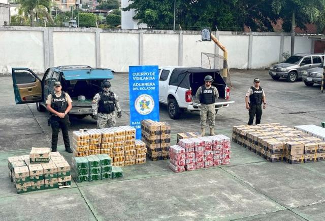 El Cuerpo de Vigilancia Aduanera, con el apoyo de la Policía Nacional, interceptó dos vehículos en los que se trasladaban cajas con cerveza importada, sin los documentos de respaldo exigidos por la ley ecuatoriana.