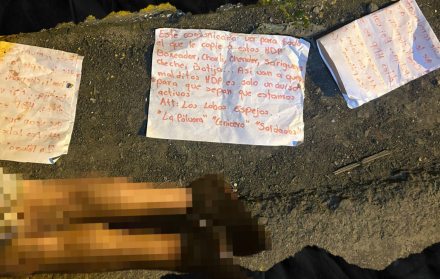 Poco a poco, otros vecinos encendieron luces y también se asomaron, mientras que otros llamaron al ECU-911. La policía llegó minutos después y lo que encontraron fue aterrador: el cuerpo de un hombre decapitado, abandonado sobre la vía y, al costado, un saco blanco con su cabeza dentro y tres panfletos escritos en letras negras.