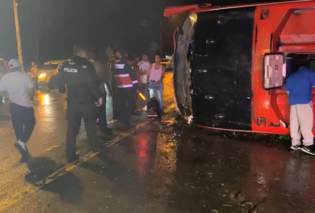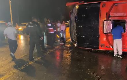 Una mujer fallecida y varios heridos tras volcamiento de autobús en Esmeraldas