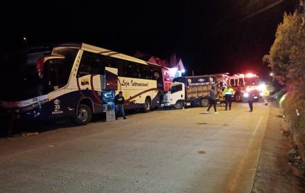 Azuay: Una mujer murió en choque de camión con bus interprovincial