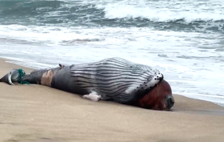 Ballena juvenil fue encontrada muerta en Mar Bravo, Salinas