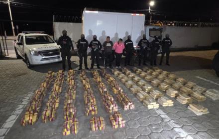 Un hombre y una mujer, quienes se encontraban como ocupantes del vehículo de carga, fueron aprehendidos por los uniformados, para ser llevados luego hacia una unidad judicial, a la espera de la definición de su situación legal.