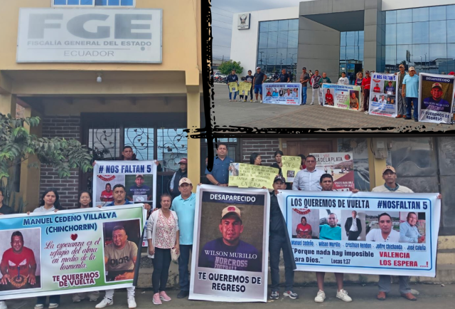 Con pancartas y mensajes de apoyo, los familiares han levantado su voz en la Unidad de Vigilancia Comunitaria en la ciudad de Manta, pidiendo que la búsqueda de sus allegados no se detenga. Exigen atención y justicia.