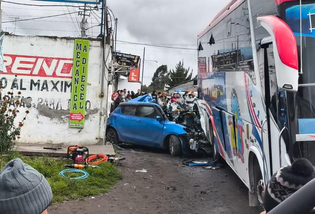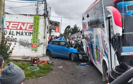 El más reciente ocurrió a las 15:00 del martes 1 de julio. Un bus de la Flota Pelileo, que salía de una mecánica cercana, estaba estacionado junto a la vía cuando un automóvil azul que bajaba hacia el centro de la ciudad lo impactó con violencia.