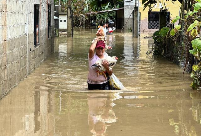 Situaciones similares se viven en otros puntos afectados. Enema Torres, mientras sostenía en sus manos una caja con pollos sobrevivientes, narró entre lágrimas cómo la corriente destruyó su terreno sembrado con plátanos y naranjas. “Todo se fue con el agua. Apenas pude salvar unos diez pollos; con eso volveré a comenzar”, comentó.