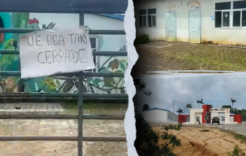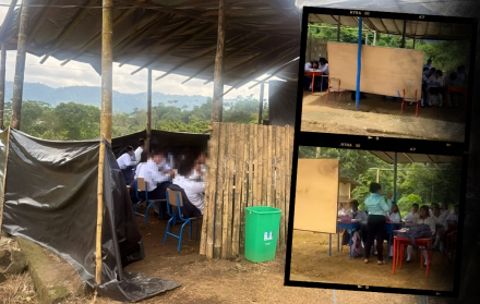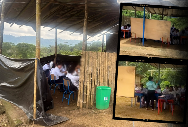 Desde el inicio de clases en este periodo, los 350 estudiantes ya no pisan la escuela del milenio. La comunidad la selló para evitar tragedias. Ahora imparten las clases al lado de la cancha comunal, en improvisadas aulas de caña guadúa, madera vieja y plástico negro. No hay paredes, ni electricidad, ni agua potable, tampoco baños. Solo hay voluntad.