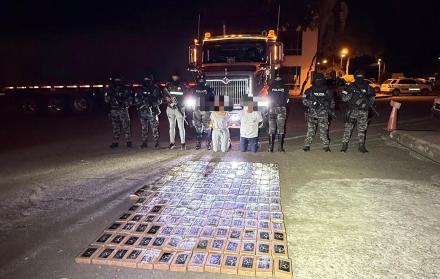 En un operativo ejecutado por la Unidad Nacional de Investigaciones Antidrogas (UIAN) en el cantón El Carmen, al norte de la provincia de Manabí, fueron detenidas dos personas —un hombre de 40 años y una mujer de 25— que transportaban una fuerte cantidad de droga en un vehículo tipo tráiler, el cual había salido desde Santo Domingo.
