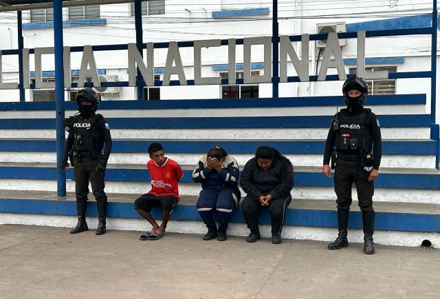 Los detenidos fueron identificados como Kerly Villacrés (29 años), Karla Villacrés (32 años) y Justin Argudo (19 años), quienes no registraban antecedentes penales.