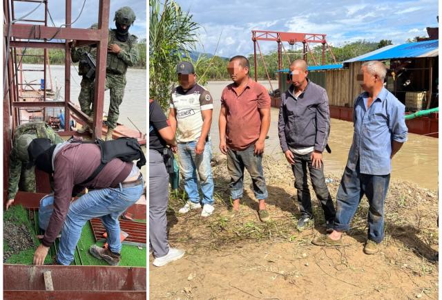"Se inhabilitó maquinaria y se decomisaron insumos utilizados en la actividad ilícita. Además, fueron aprehendidos un ciudadano ecuatoriano y tres extranjeros, quienes junto a las evidencias fueron puestos a órdenes de la autoridad competente", detallaron las Fuerzas Armadas, a través de su cuenta en la red social X.