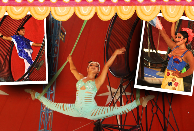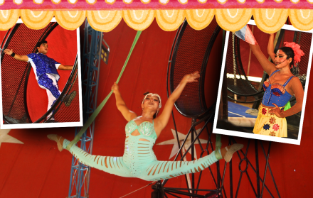 El evento se desarrolló en la carpa del circo Hollywood, instalada temporalmente en el cantón La Libertad. Los talentosos hermanos Palma Milanés dejaron sin aliento al público con su impresionante actuación en el péndulo o rueda de la muerte. Nayely y Wino recibieron una ovación tras su deslumbrante presentación.