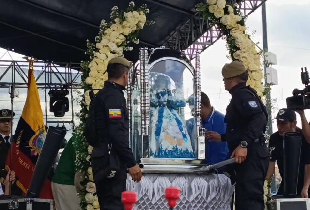 Previo al acto litúrgico, monseñor Heras resaltó el fervor que despierta la Virgen de El Cisne. Esta peregrinación es "un testimonio de fe y amor", expresó. El religioso recibió la imagen de la Generalísima, como también se la denomina, de parte de Renato Cevallos, de la Policía Nacional, quien le confirmó que el trayecto se desarrolló con normalidad.
