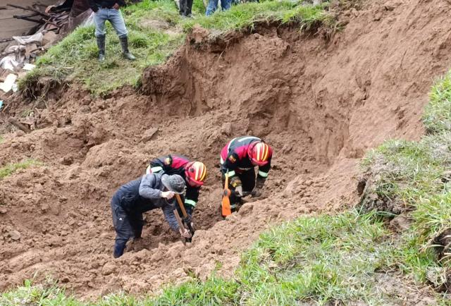 El alud de tierra sorprendió a los esposos mientras dormían. El barro ingresó con fuerza a la vivienda, destruyéndola por completo. Inmediatamente, las unidades de rescate del Cuerpo de Bomberos, junto con personal de Gestión de Riesgos y maquinaria pesada, iniciaron la búsqueda entre los escombros.