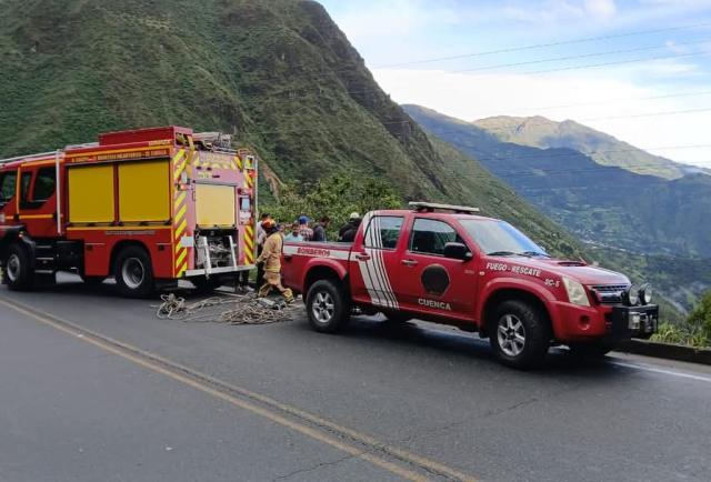 En respuesta al siniestro, un equipo de socorristas del Cuerpo de Bomberos de Cuenca descendió entre maleza por la pendiente y al llegar al sitio donde quedó el vehículo destruido confirmaron la muerte de la mujer y la gravedad de los heridos, que fueron extraídos del vehículo y trasladados a casas de salud de Cuenca.