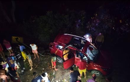 El vehículo cayó a un abismo de unos 5 metros provocando la muerte de uno de los ocupantes que sería un turista que regresaba de las playas de Esmeraldas.Cortesía