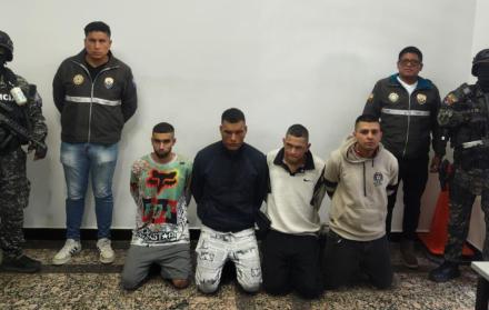 Las unidades investigativas siguieron su rastro hasta el sector de La Roldós, en el barrio Caminos de la Libertad, norte de Quito ,donde el automotor fue interceptado y sus ocupantes neutralizados. En el sitio se detuvo a cuatro hombres de nacionalidad colombiana identificados como Jhon Esteban Cano Montaño, Kevin Alejandro Castaño Taba, Carlos Andrés Castaño Valencia y Yorman Antonio Molina Escobar.