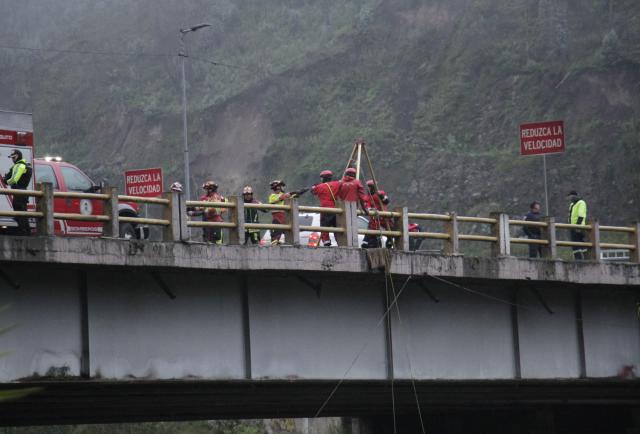 Bomberos, Policía y AMT rastrean desde la tarde del domingo la quebrada de Guápulo para ubicar a una mujer que se arrojó desde el puente