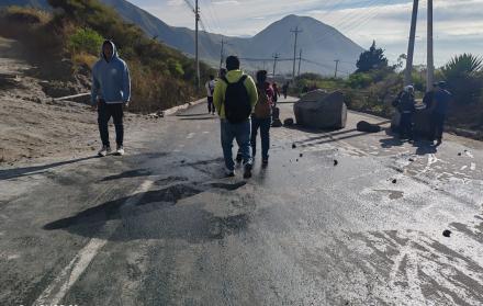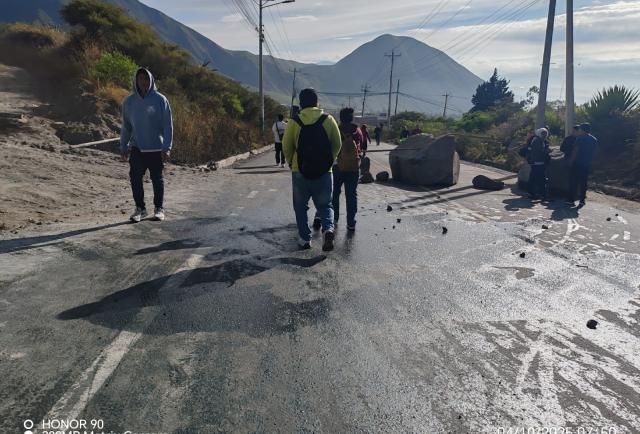 La vía Mitad del Mundo – Río Blanco, en el norte de Quito, permanece inhabilitada este sábado 4 de octubre de 2025 debido al bloqueo causado por la caída de grandes rocas y tierra a la altura del sector de Caspigasí.