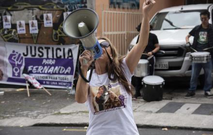 Carlota Rodríguez agarró un megáfono y se paró en media avenida Manuel Larrea, en el centro de Quito, para gritar: “¡Queremos justicia, prisión para el femicida!”.