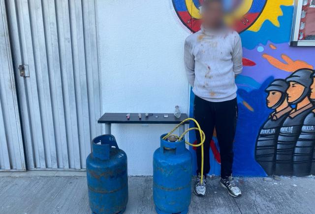 Horas más tarde, la Policía de Calderón recibió otra alerta que provenía del mismo lugar. En esta ocasión, el llamado era más preocupante porque se informaba que un ciudadano intentaba incendiar una vivienda utilizando gasolina y dos cilindros de gas. Al parecer, estaba bajo los efectos de alcohol o algún estupefaciente.