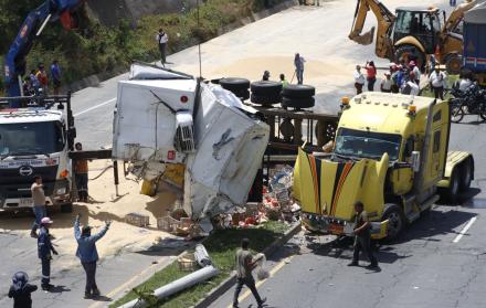 El pasado 30 de octubre, el tráiler perdió los frenos mientras descendía por la Ruta Viva, en sentido Quito–Aeropuerto, mientras transportaba alimento para aves.