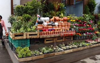 A pocas cuadras, en la esquina de Guayaquil y Espejo, Katherine Lugmaña sigue vendiendo plantas. Sus ventas han caído un 50 % por el temor ciudadano.