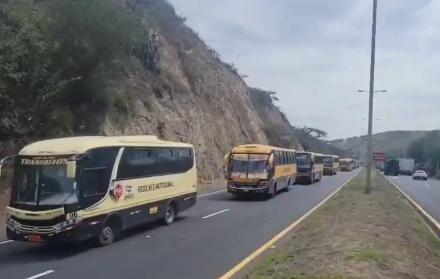 A esta hora se registra una caravana de buses que realiza un recorrido por la Panamericana Norte 28B. Ingresan por la av. Simón Bolívar (parroquia Guayllabamba)