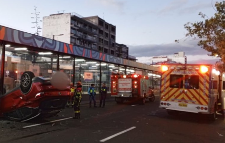 El hecho se produjo aproximadamente a las 05:49, cuando, según una llamada al ECU 911, dos vehículos colisionaron en los carriles de la avenida 10 de Agosto, específicamente en el sector de la parada del Trolebús. A consecuencia del impacto, un vehículo de color rojo perdió el control y terminó volcado contra la estación, destruyendo parte de los cristales y la estructura del andén.