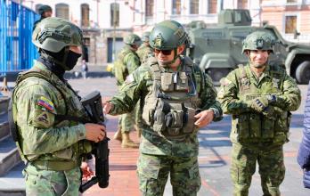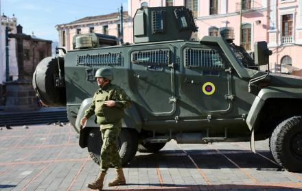 En este contexto, en el Centro Histórico de Quito, miembros de las Fuerzas Armadas se encuentran desplegados en puntos estratégicos para dar seguridad. Uno de estos es la Plaza de Santo Domingo donde un grupo de al menos 15 militares custodian la zona.