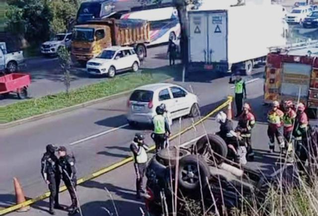 Según el reporte de los funcionarios que se encontraban en el lugar, el motociclista perdió la vida de contado y el conductor del vehículo liviano terminó con heridas. Además, el carro quedó volcado en plena vía.