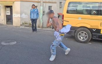 Luego, el ciudadano continuaba en una actitud problemática y no quería ser revisado por el gendarme. En ese momento agarró una piedra y le lanzó al sargento, pero no le llegó. Entonces, Willy Ec aprovechó un descuido y sometió al sujeto.