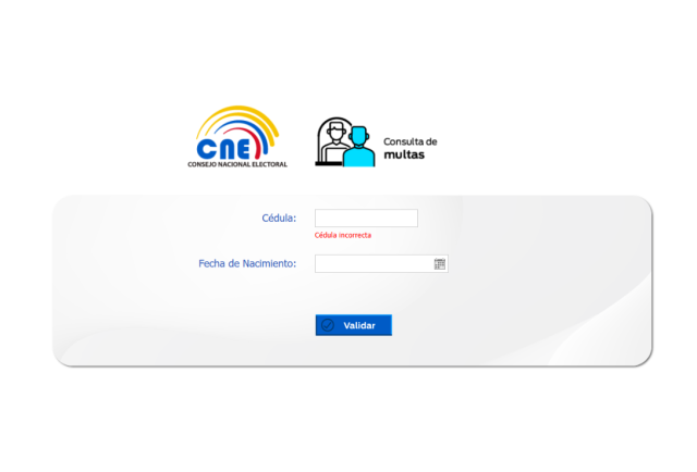 - Ingresar al portal oficial del CNE en la sección de consulta de multas (puedes dar clic aquí para acceder directamente)
