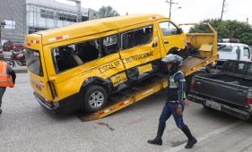 Accidente entre bus escolar y bus urbano en Guayaquil: uno de los conductores huyó