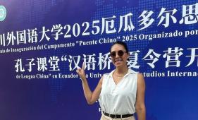 La comunicadora machaleña, de raíces peruana y lojana, se ganó una beca para ir a perfeccionar el idioma asiático, que estudia cerca de tres años