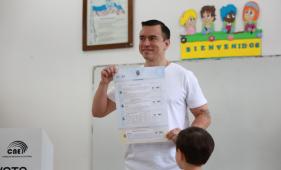 Presidente Daniel Noboa vota en Olón y reafirma apoyo al Sí en referéndum 2025