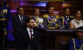 El presidente de la Asamblea Nacional, fue el encargado de emitir el primer discurso durante la ceremonia de investidura de Daniel Noboa