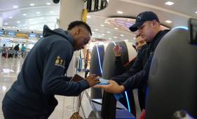 Aficionados albos madrugaron por una firma de jugadores que ya están en Uruguay para la final de la Copa Sudamericana en busca de la quinta estrella