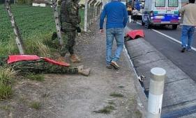 Agentes de la Comisión de Tránsito del Ecuador investigan y rastrean la ubicación del automotor causante del incidente cuyo conductor abandonó el lugar de los hechos