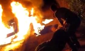 Mujer Se quemaba junto a una camioneta envuelta en llamas. Ella y su esposo que viajaban en una moto se accidentaron en la vía Jama-Pedernales