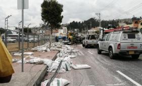 Un carro cargado de urea perdió los frenos y se impactó con un auto. Después se estrelló contra una camioneta y arrolló a dos trabajadores.