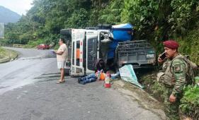 Accidente en la vía Baños–Puyo: camión con explosivos volcó deja un muerto y heridos