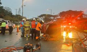 Una mujer murió tras perder el control de su vehículo en la Avenida del Bombero, en Guayaquil. El auto chocó contra un muro y volcó