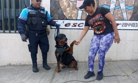 La perrita de raza Rottweiler está entrenada para percibir a las personas borrachas y detectar droga.