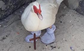 Viral. El animal cargaba un crucifijo en el cuello y en sus patas llevaba medias