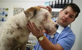 El animal fue agredido hace poco más de una semana. Los rescatistas ofrecen 1.200 dólares para dar con el o los responsables.