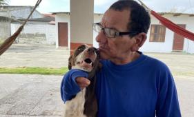El artesano guayaquileño, que buscó refugio para sus penas del alma en Montañita, encontró el amor en dos perritas adoptadas. Luego de décadas de drogadicción y alcohol logró rehabilitarse.