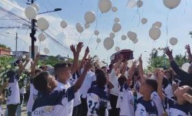 Con globos blancos sus alumnos le dijeron adiós.