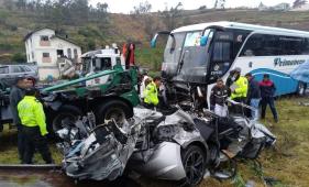 Tungurahua: Carro quedó atrapado debajo de micro