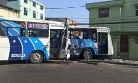 En el centro de Guayaquil dos buses se hicieron 'ñatos'
