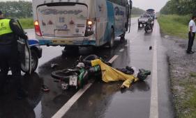 Un motorizado se estrelló contra un bus en la vía El Triunfo