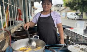 Nelly y Vicenta, en el suroeste de Guayaquil, atienden desde las 07:00 en un puesto de desayunos. El plátano verde es el principal componente